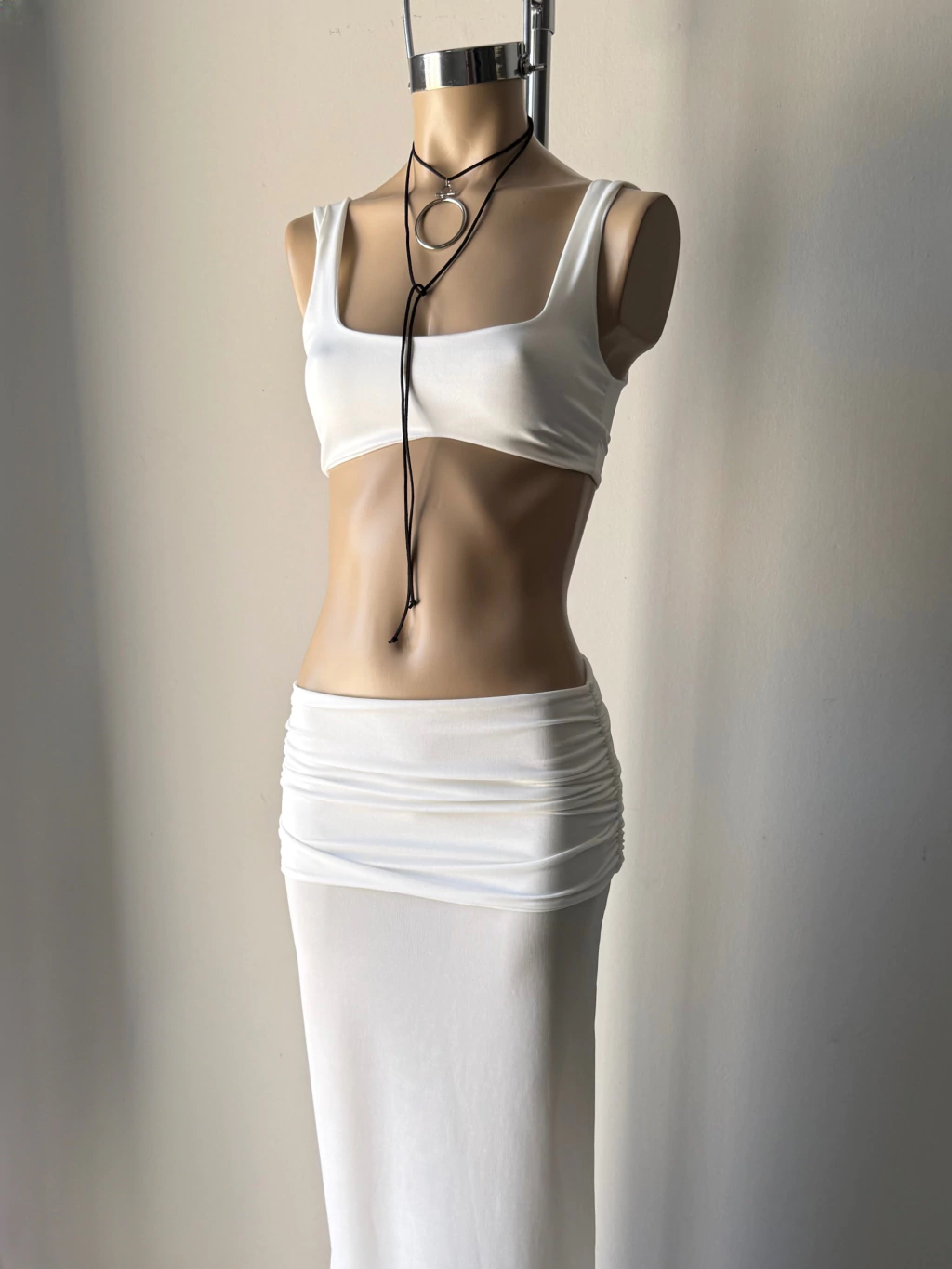 Falda larga de microtul con caída suave y un forro interno que evita transparencias. Ideal para usar tanto de día como de noche.