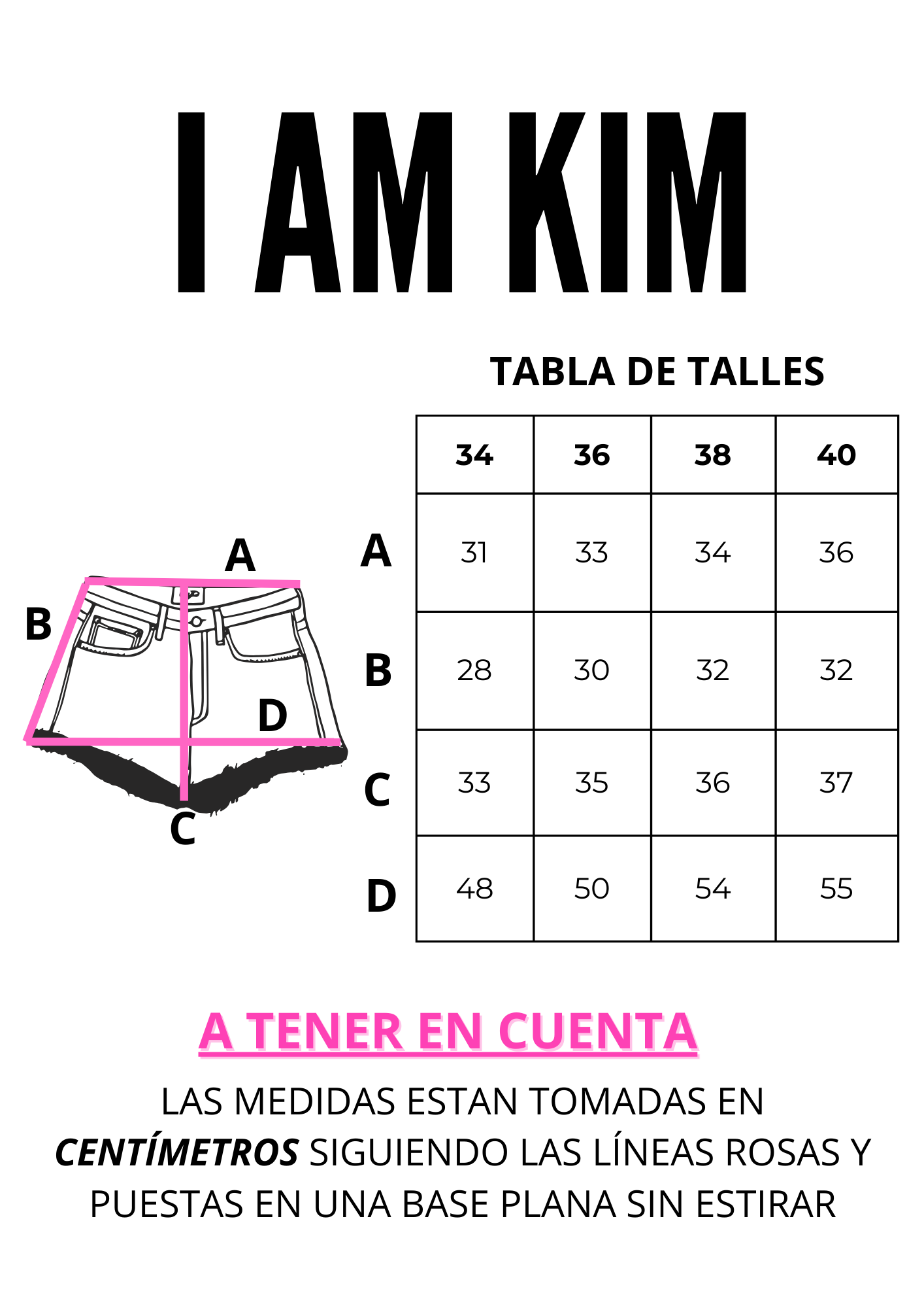 Las medidas se toman siguiendo las líneas de color fucsia