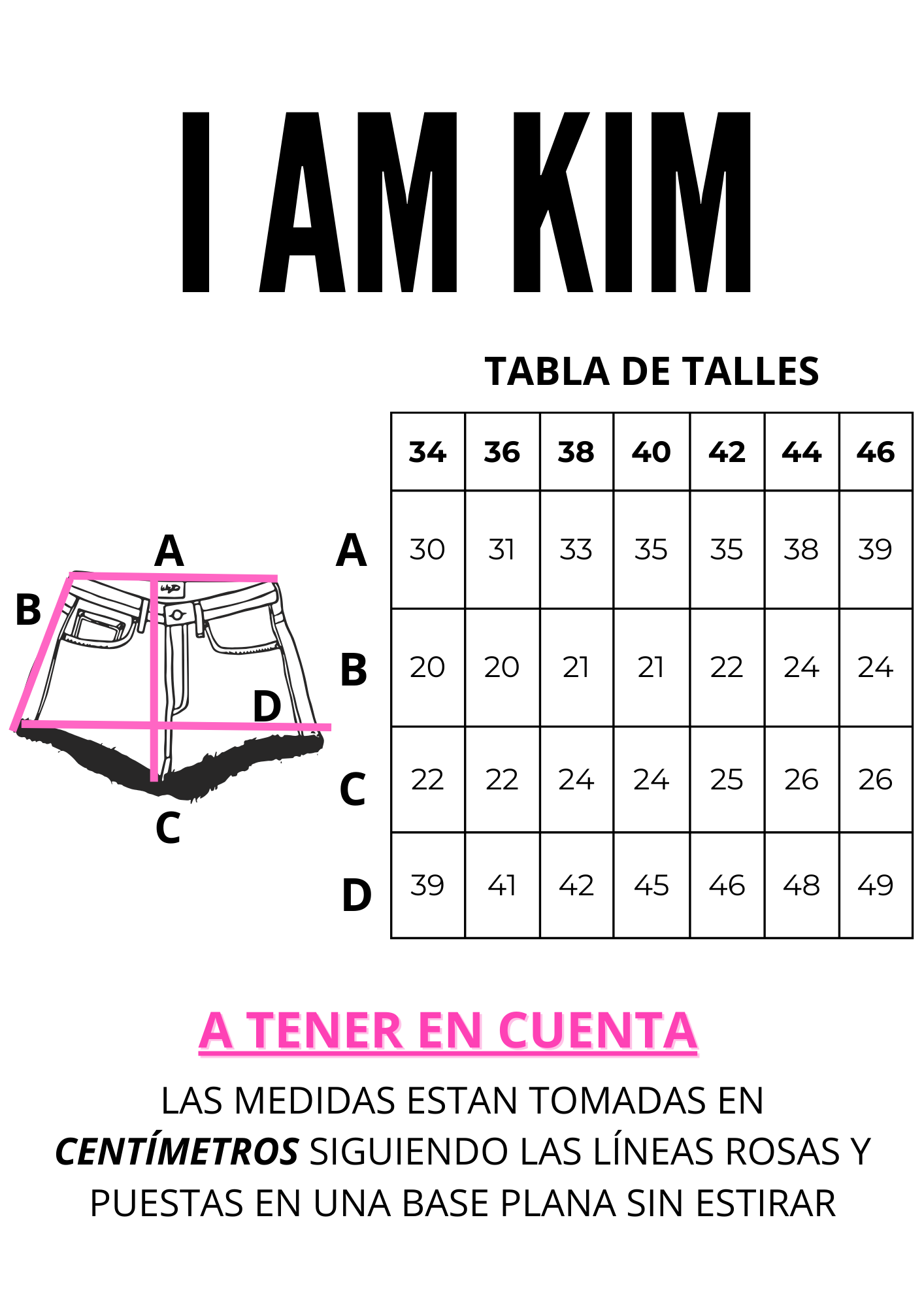 Short de jeans tiro bajo/medio. Las medidas se toman siguiendo las líneas de color fucsia